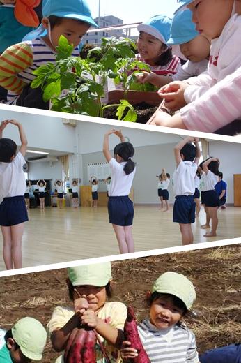 保育所保育指針に記載されている教育に関わるねらい及び内容に基づき、子どもの「心情」、「意欲」、「態度」を高めるよう努めています。