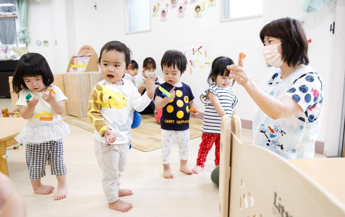 園でのおおまかな1日の過ごし方をご紹介します。季節や天気に合わせて、近くの公園まで散歩にいったり、園で体を動かして遊んだり。