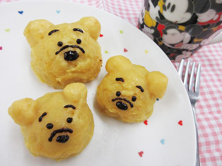 スイートポテトに耳と顔を付け、子どもたちから大人気のプーさんにしました